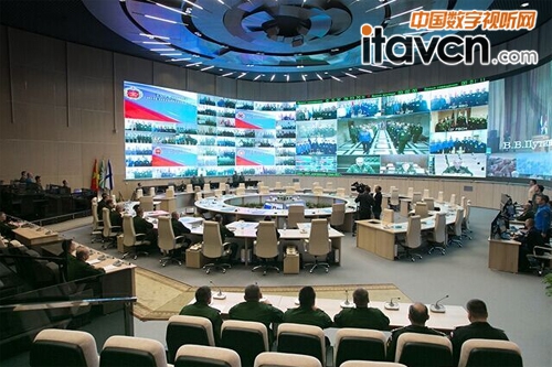 【中国数字视听网讯】2014年12月1日,被称作“战时政府”的俄罗斯国家防御指挥中心(NDCC)正式投入作战值班。该中心在和平时期负责监控对国家安全的威胁,一旦爆发战争,就将接管整个国家。由俄罗斯媒体公布的一组俄罗斯国防指挥中心内部照片更是引起了广泛关注。从媒体公布的照片可以看出,俄罗斯国防指挥中心规模庞大、设施完备、科技感十足,而最引人注目的就是照片中堪比小型足球场大小的显示屏幕。据了解,这些显示屏幕就是用来实时直播战略轰炸机从俄空军基地起飞,前往叙利亚执行空袭任务;“莫斯科”号导弹巡洋舰从地中海东部发来现场汇报等。