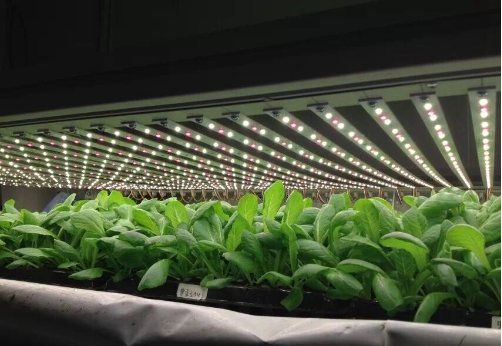 江西省科学院生物资源研究所采用水培和基质培两种方式,开展LED光源对蔬菜工厂生产栽培影响的研究,结果表明:红光促进植物高生长,蓝光促进植物茎的增粗生长,红:蓝为8:1条件下,生菜和白菜生长快速,少量紫外光(UV-B)的加入可促进蔬菜维生素C的积累。