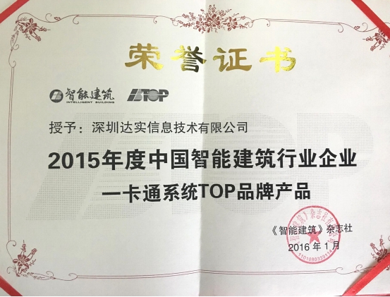 达实信息至此次荣获2015年度中国智能建筑行业品牌企业一卡通系统、停车场管理系统两大奖项后,达实信息已是连续四年获得此项荣誉。