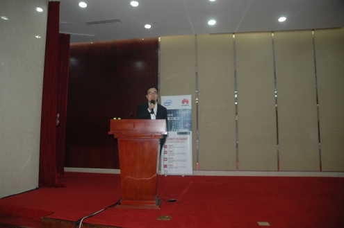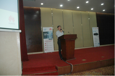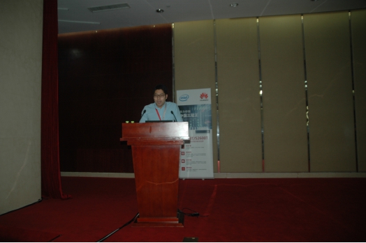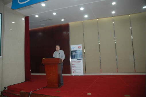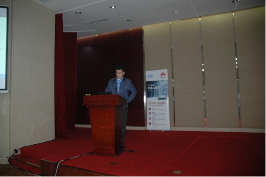 华为山东企业业务部部长夏兴昌致辞后,英特尔技术支持部高级经理庞济先生致辞,他首先概述性介绍了英特尔的技术实力和在全球的领先地位;接着重点介绍了英特尔处理器全家族、SSD在各个解决方案领域中的应用、英特尔固态盘数据中心家族提供持续出众的性能等。他那特地恭喜华为(华为去年营收达600亿美元,英特尔是550美元,营收上华为第一次超过了英特尔)的话语和他介绍的英特尔的‘丰富并连接地球上的每个人的生活’企业愿景,让人体会到了英特尔员工和英特尔的真诚。