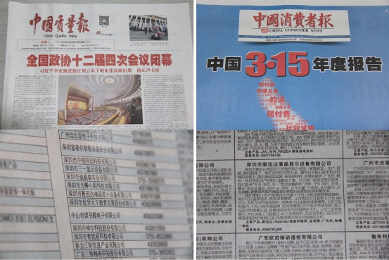 雅迅达与中粮、华为、海尔、格力、美的、阿里、京东、苏宁、小米、魅族、麦乐购等2000家企业一起在中国质量检验协会的带领下,组织开展“产品和服务质量诚信承诺”主题活动,提倡企业主动发布产品和服务质量标准的自我声明、自我约束,监督企业践行产品和服务质量诚信承诺。在《中国质量报》、《消费者权益报》上共同倡议、为“质量强国”建设贡献自己的一份力。