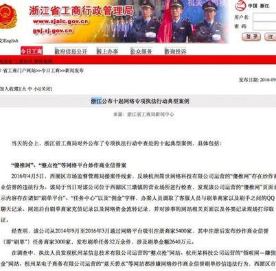 浙江省工商局公布十起网络专项执法行动典型案例