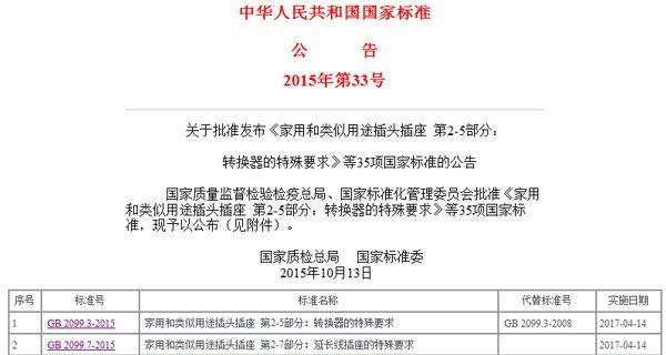 2、2017年4月14日起国内所有插座完成新、旧标准切换,企业只能生产符合新国标的产品;