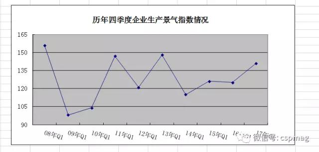 2017年一季度,外贸出口景气指数为141,比上季度上升了9点,比去年同期上升31点,达到了10年来的历史最高水平,位于“较景气区间”(见图6)。其中,有48%的调查企业国外订单有了新的增长,比上季度上升了4个百分点;有44%的企业反映销售“持平”,与上季度持平;有8%的企业反映“下降”,比上季度下降4个百分点。