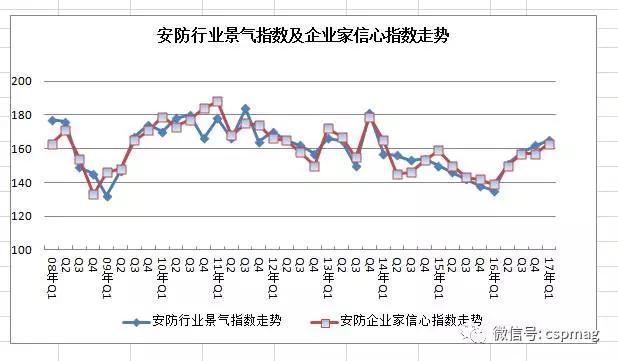 据对行业景气调查资料显示:一季度安防行业主要景气指数有所提升,其中内销市场远高于去年同期,外贸出口景气度达到历史最高位,产品销售价格相对稳定,库存下降。与此同时,企业在固定资产投资、科技研发投入的积极性不断提高,企业家对未来拥有较强信心。当然从近来几个季度行业增长情况分析,今年一季度的高增长带有一定的反弹特征,在发展中仍存在不少问题,许多新的市场需求仍在孕育,供给侧竞争加剧,部分企业经营困难,技术创新面临新的挑战。