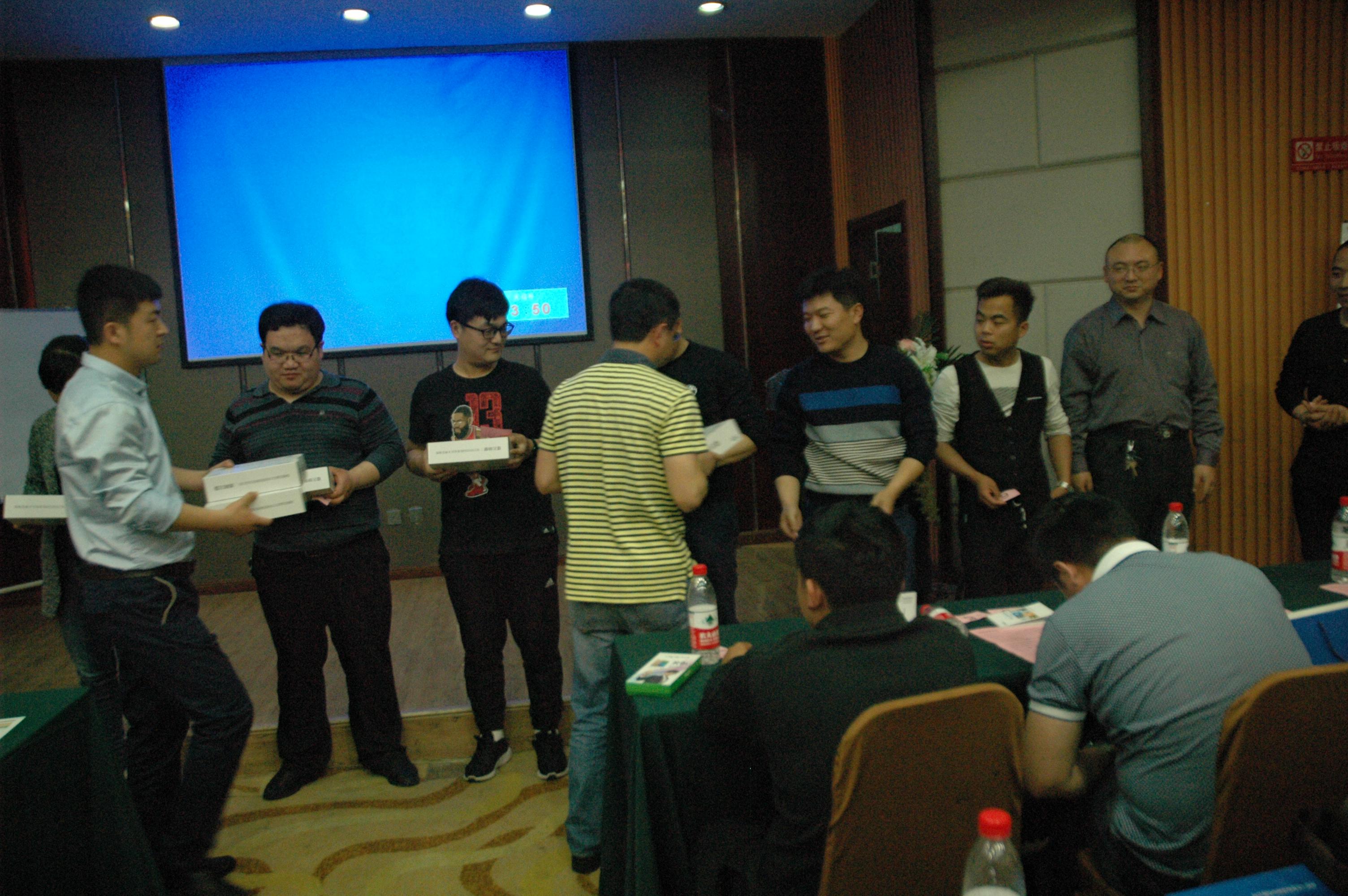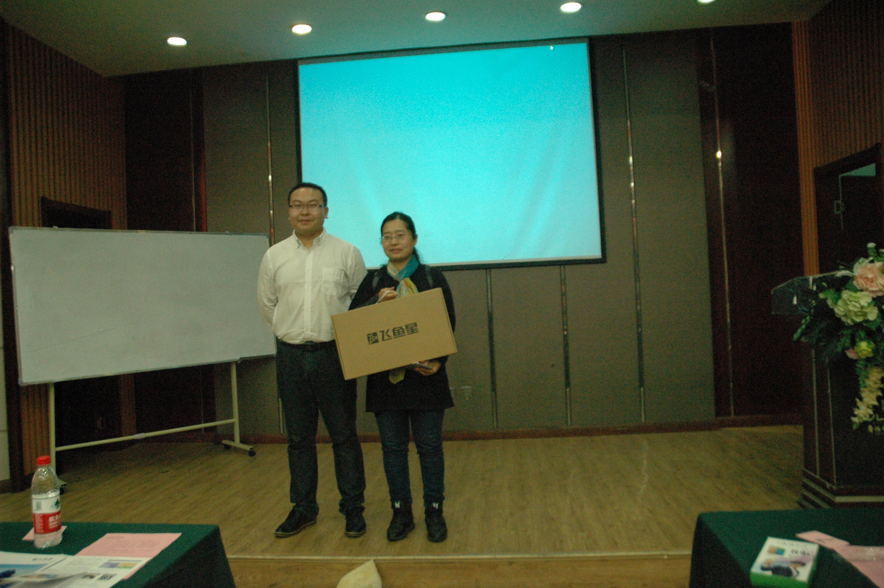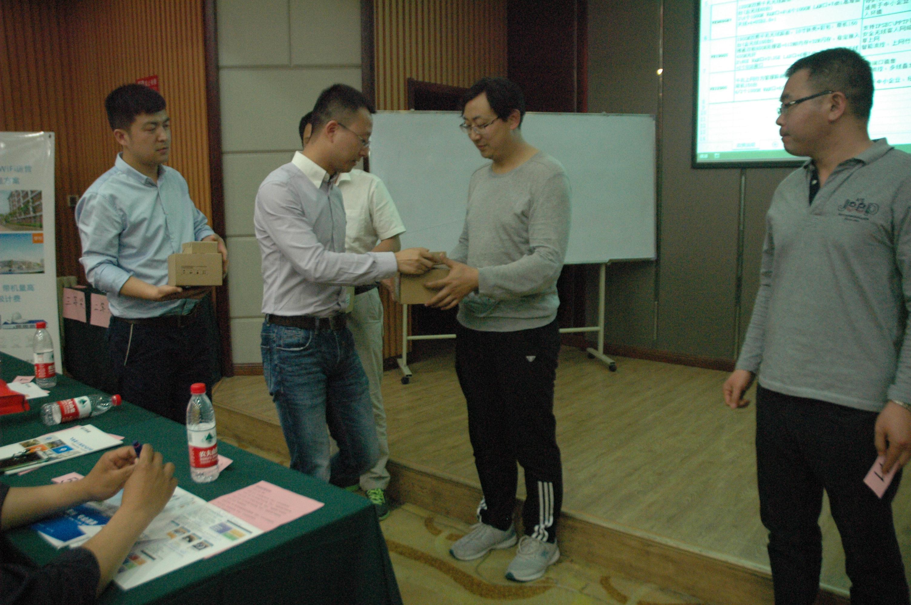 飞鱼星无线产品经理周海川先生为与会嘉宾抽取了3名二等奖(奖品皆为飞鱼星VP330无线AP一台),并为获奖嘉宾颁奖、与3名获奖嘉宾合影。