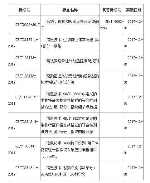 另外还涉及多项生物特征识别领域国家标准,包括《GB/T33767.1-2017信息技术生物特征样本质量第1部分:框架》、《GB/T33842.2-2017信息技术GB/T26237中定义的生物特征数据交换格式的符合性测试方法第2部分:指纹细节点数据》《GB/T33842.4-2017信息技术GB/T26237中定义的生物特征数据交换格式的符合性测试方法第4部分:指纹图像数据》、《GB/T33844-2017信息技术生物特征识别用于生物特征十指指纹采集应用编程接口(BioAPI)》。