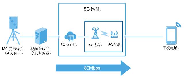 演示厅设置的180度摄像头拍摄到的风景,通过5G网络超高速发送。为了让多个终端用户可以从不同角度同时欣赏风景,180度摄像头利用4个镜头从不同方向拍摄视频,这些视频被实时合成为广角全景图像。对全景视频数据进行压缩、利用5G网络实时发送给智能手机或平板电脑,从而提供身临其境的用户体验。此项技术与5G网络融合,有望应用于虚拟现实(VR)和增强现实(AR)等方面。