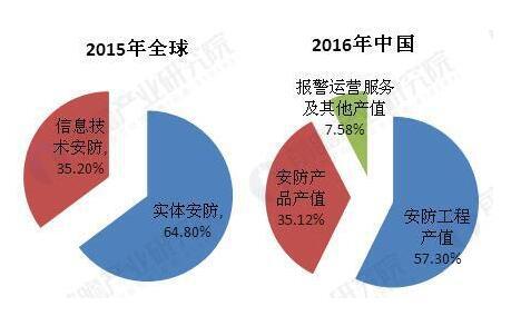 图表2:全球和中国安防产业结构对比