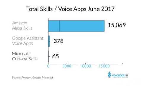 据外媒报道,目前亚马逊 Alexa 的技能已经超过 1.5 万个,远远超过其对手谷歌助手(Google Assistant)和微软的 Cortana。