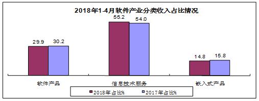 据统计,2018年1-4月,全行业实现利润总额2196亿元,同比增长11.4%。软件业实现出口165亿美元,同比增长3.8%。其中,外包服务出口增长4.4%;嵌入式系统软件出口增长2.8%。